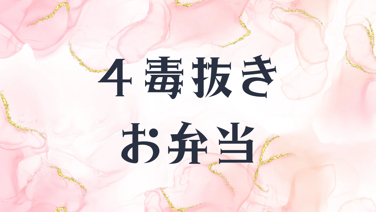 4毒抜きとは、小麦・植物油・乳製品・甘いものを食べない食事をとることです。